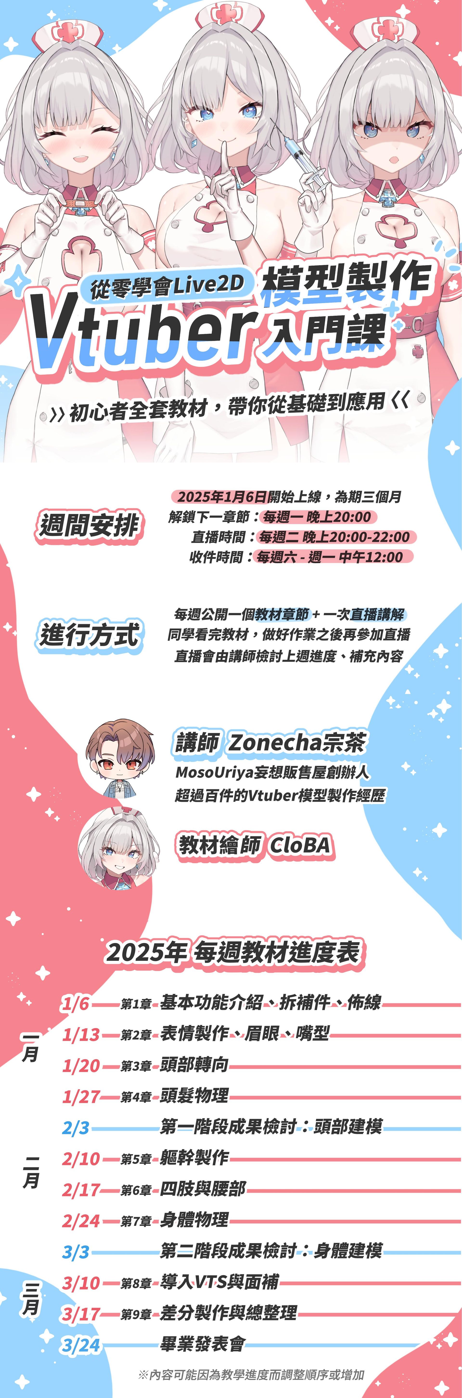 搭配每週直播,由做過上百個Vtuber模型的宗茶老師詳解釋疑,仔細檢討同學作業